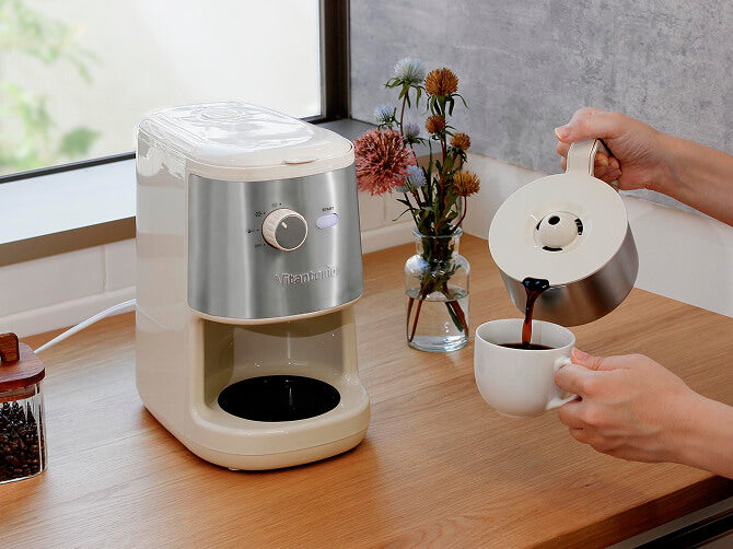 その日の気分や豆の種類に合わせて粗挽き・中細挽きが選べます。水とセットするだけで、カンタンに挽きたてのコーヒーが楽しめます。